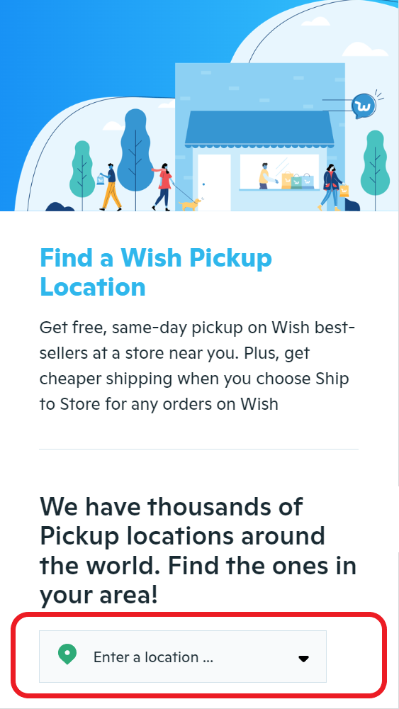 - Note that these stores are not a Wish shopping center, but rather a place from which you can pick up the order that you made online from the Wish website or app.